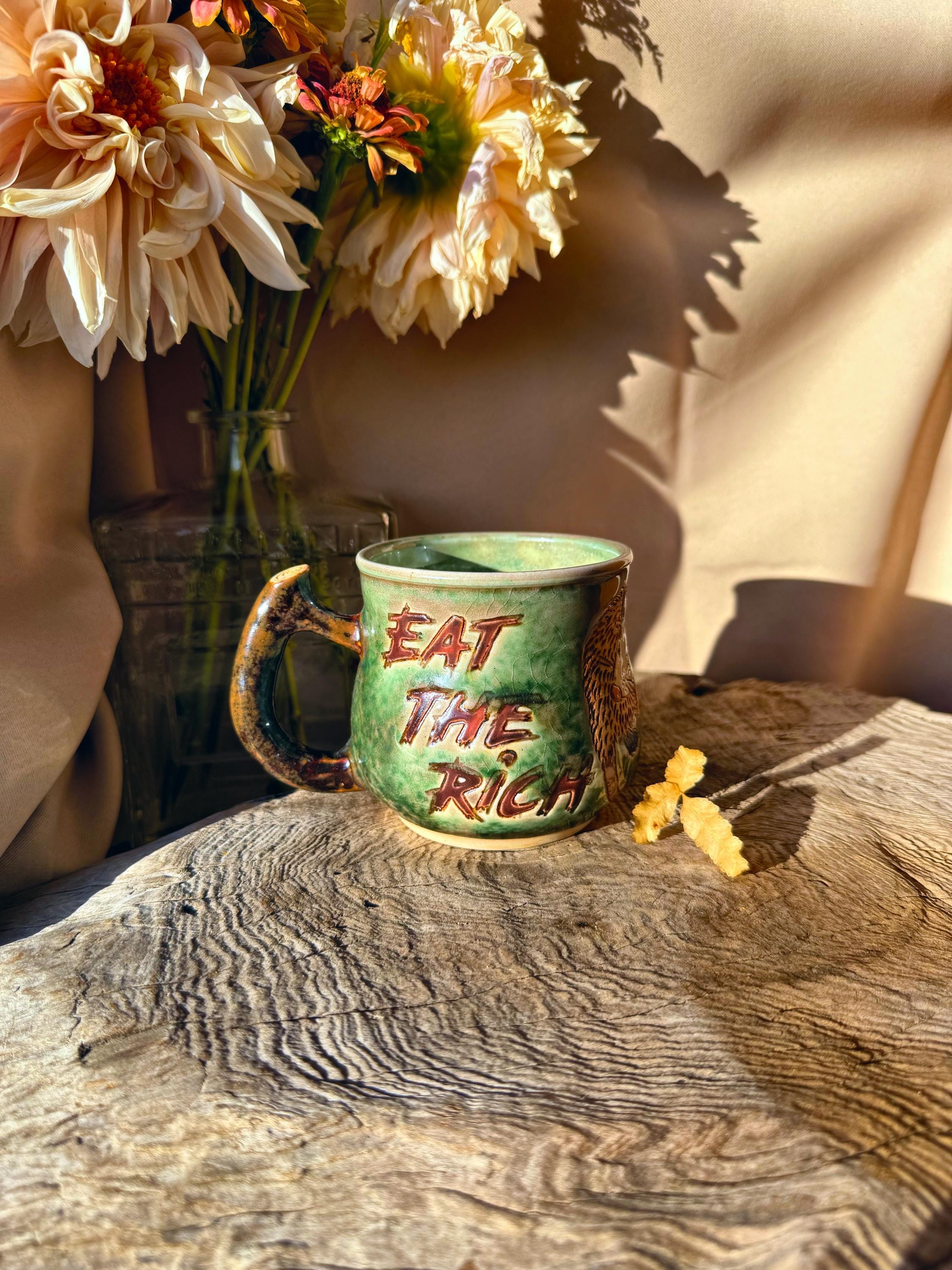 Because it takes weeks to complete a mug. Because I work mainly in high quality porcelain. Because my work is highly detailed. All hand-carved. Because I’m a one-woman show. Because I value and love myself. Because I’m worth it. If you think my prices are too high, my work is not for you.